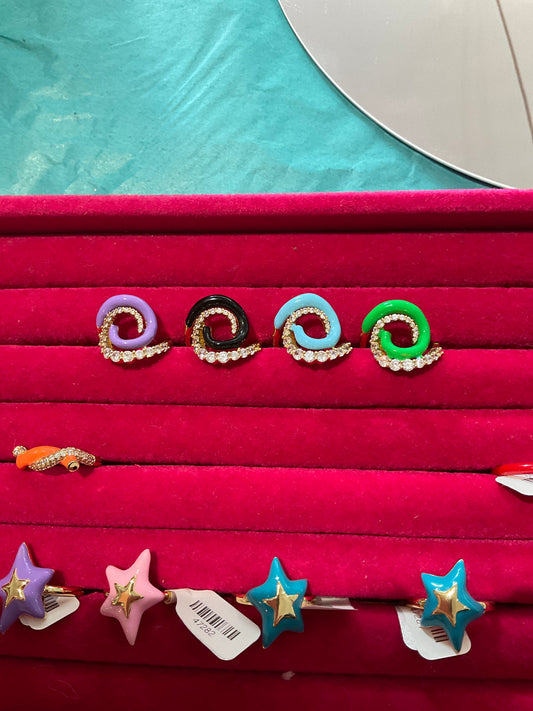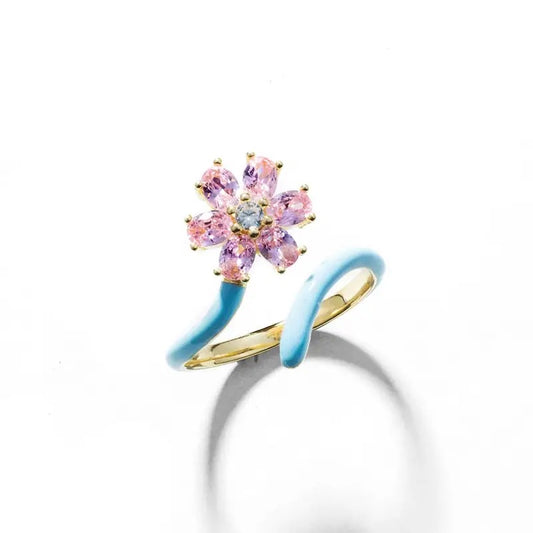 Rainbow Square Cut Cz 18k Gold Plated Open Ring
