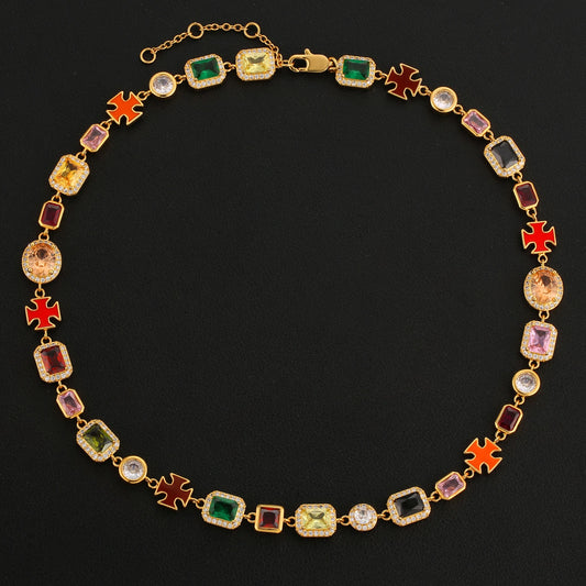 Multicolour Gem Stone 18k Gold Plated Bracelet and Necklace